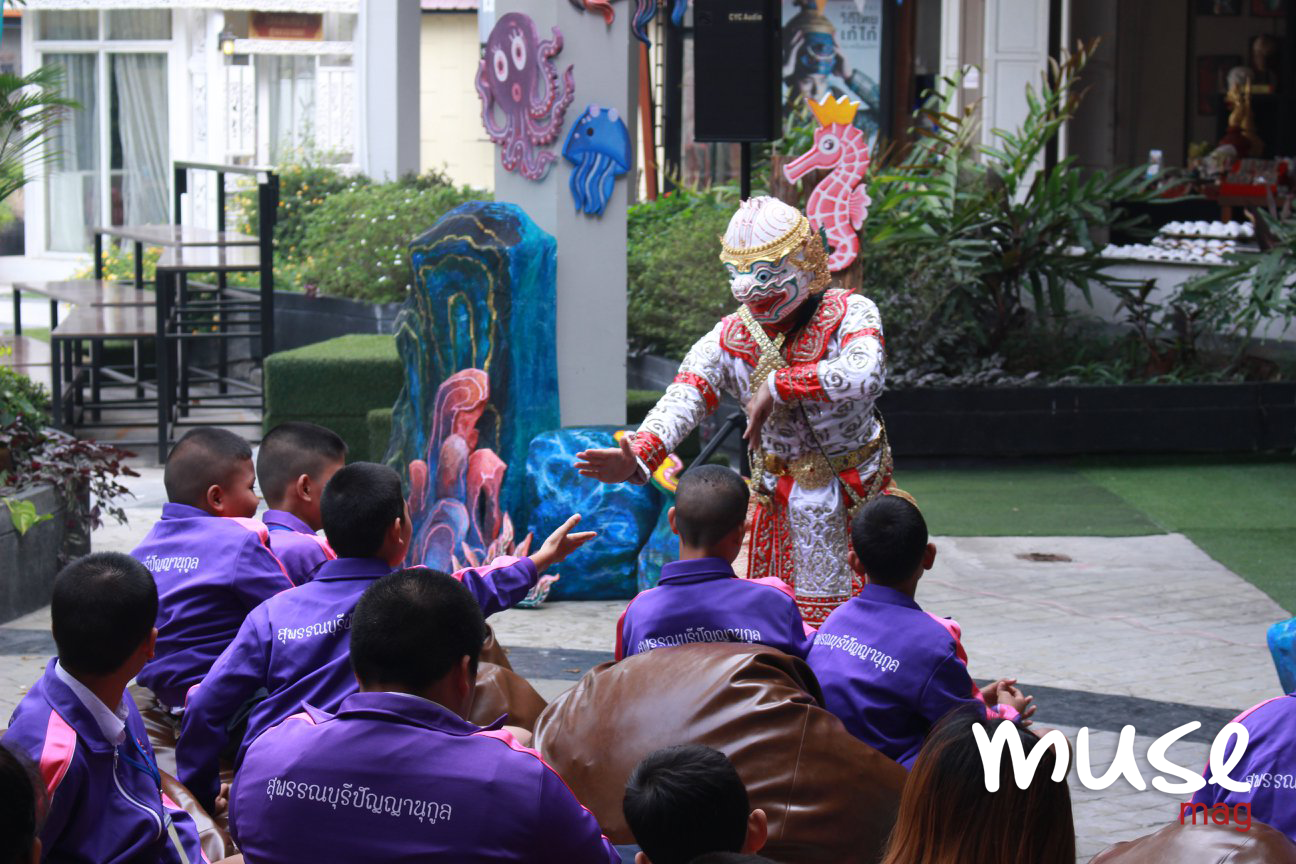 จากความรักในศิลปวัฒนธรรมโขนของผู้ก่อตั้ง และต้องการถ่ายทอดความรักนั้นแบ่งปันเป็นการเรียนรู้เผยแพร่สู่คนรุ่นหลัง หมู่บ้านโขน (Khon-Village) เนรมิตพื้นที่ในศูนย์การค้า (The Salaya Mall) เป็นศูนย์การเรียนรู้เชิงวัฒนธรรม เปิดโอกาสให้บุคคลภายนอก พาบุตรหลานและครอบครัวมาเรียนรู้ ทดลองทำหัวโขนและฝึกหัดโขนจากบ้านโขน ชมหัตถกรรมเครื่องสังฆภัณฑ์ชั้นสูงจากบ้านสิปปะ บ้านเครื่องหวานในวัง และครัวพลับพลา สอนทำขนมไทยและสอนทำอาหารไทยโดยวิทยากรในวัง โดยกิจกรรมได้รับความร่วมมือกับศูนย์การศึกษานอกโรงเรียนกาญจนาภิเษก(วิทยาลัยในวัง)