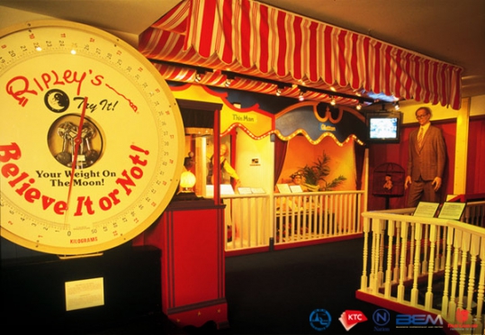 แค่เริ่มก้าวขาเราก็ว้าวกับการทักทายของบรรดาของแปลก มีของชิ้นจิ๋วพร้อมแว่นขยายให้เรามองเห็นรายละเอียดอันน่าทึ่ง ม้าสามขาที่ใช้ชีวิตได้อย่างปกติอยู่บนโลกจริงๆ ปลามีขนปุกปุยจากยุคดึกดำบรรพย์ เรือไททานิคที่ทำจากไม้ขีดไฟ 1 ล้านชิ้น แถมมีมุมถ่ายรูปชิคๆ ซ่อนอยู่ในนี้ด้วย คือมุมบาร์กระป๋องเบียร์หลายแบรนด์ในยุคเก่า ขอบอกว่าวินเทจมากเชียวล่ะ ตบท้ายความเหลือเชื่อด้วยอุโมงค์พิศวงที่เมื่อเดินผ่านจะรู้สึกว่าตัวคุณหรืออุโมงค์ที่หมุนอยู่กันแน่นะ กลับออกไปมีมึนๆ เบลอๆ กันบ้าง