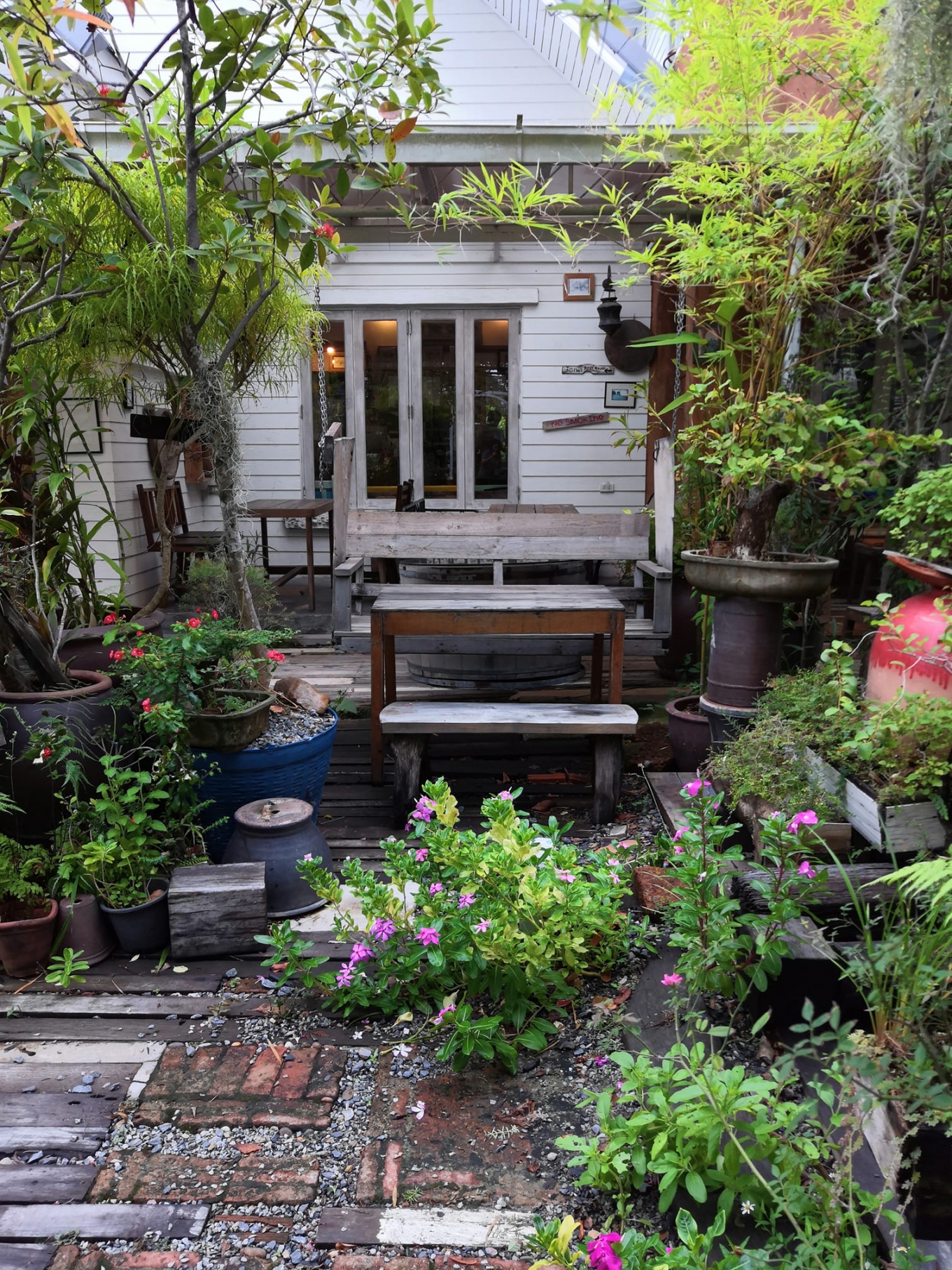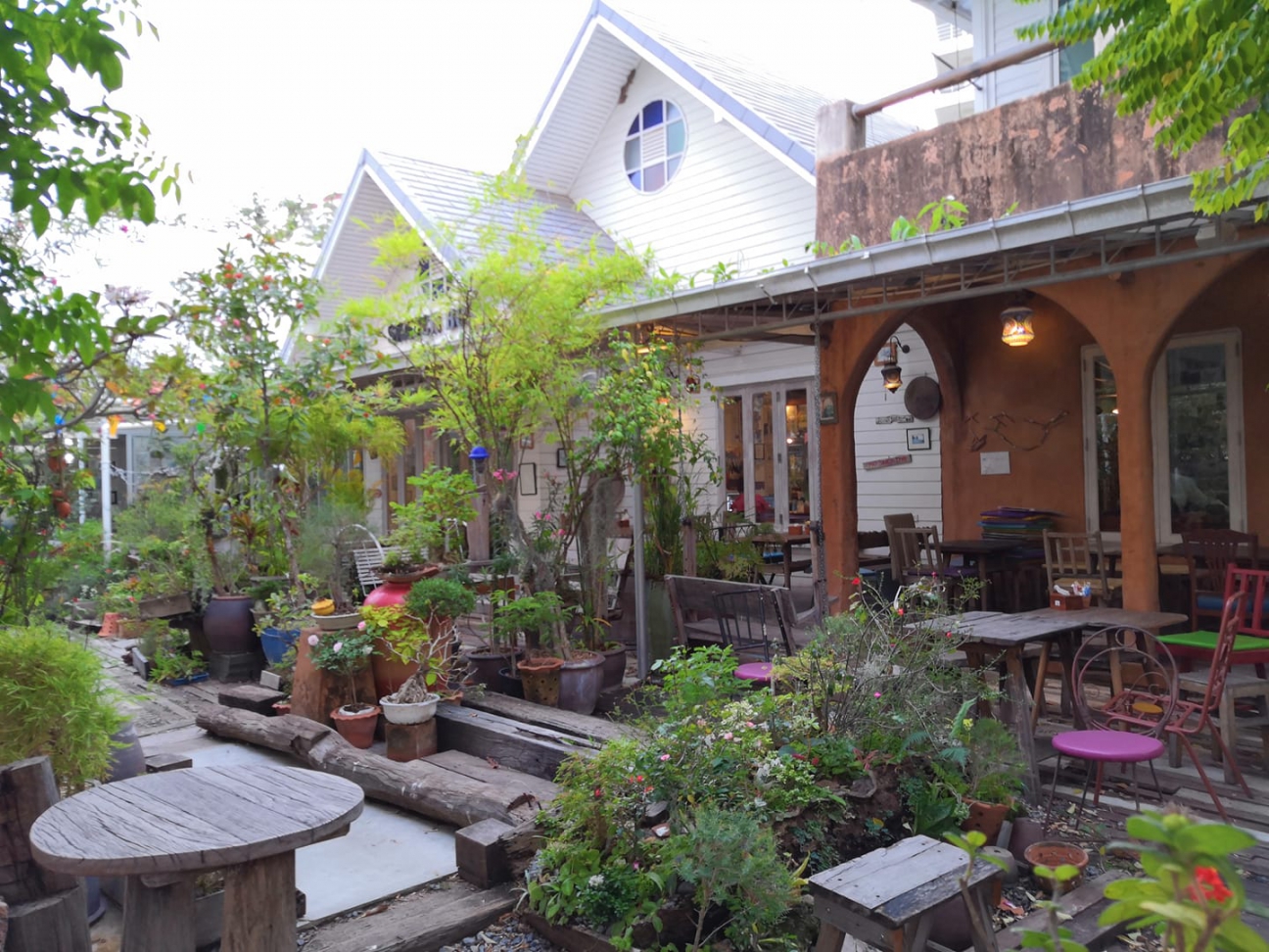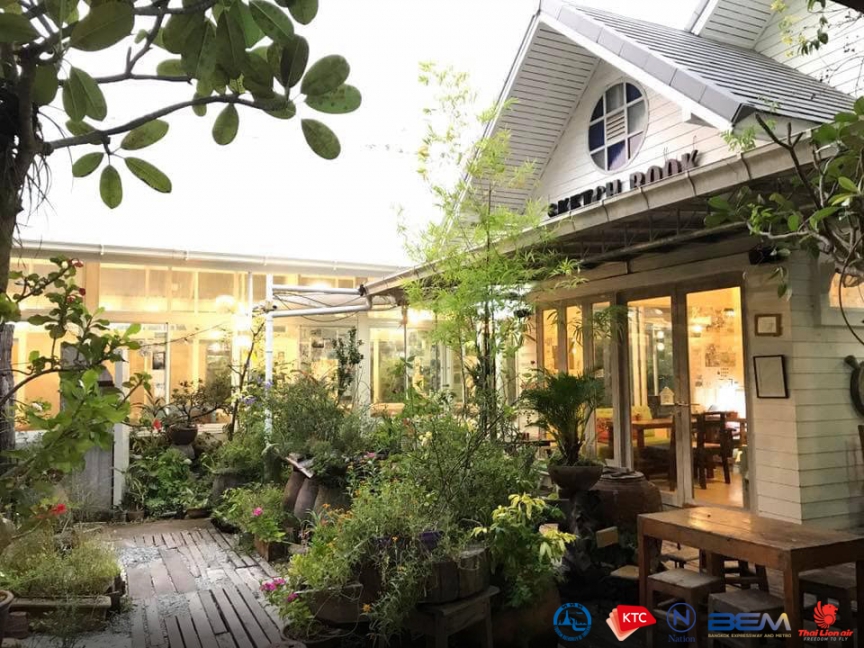 ถึงเวลามื้อกลางวัน กลางเมืองพัทยาที่ดูวุ่นวาย ยังมีที่ให้เราหลบมาอยู่ในร้านอาหารกึ่งคาเฟ่ที่เกิดจากความรักในต้นไม้และงานศิลปะ ทำให้บรรยากาศสงบร่มเย็นด้วยสีของต้นไม้ ดอกไม้ มีความอบอุ่นสไตล์โฮมมี่เพราะที่นี่เต็มไปด้วยภาพวาดเต็มผนังและสมุดสเก็ตช์ก็วางอยู่เรียงราย พร้อมกับมุมทำงานศิลปะน่ารักๆ ของเจ้าร้าน