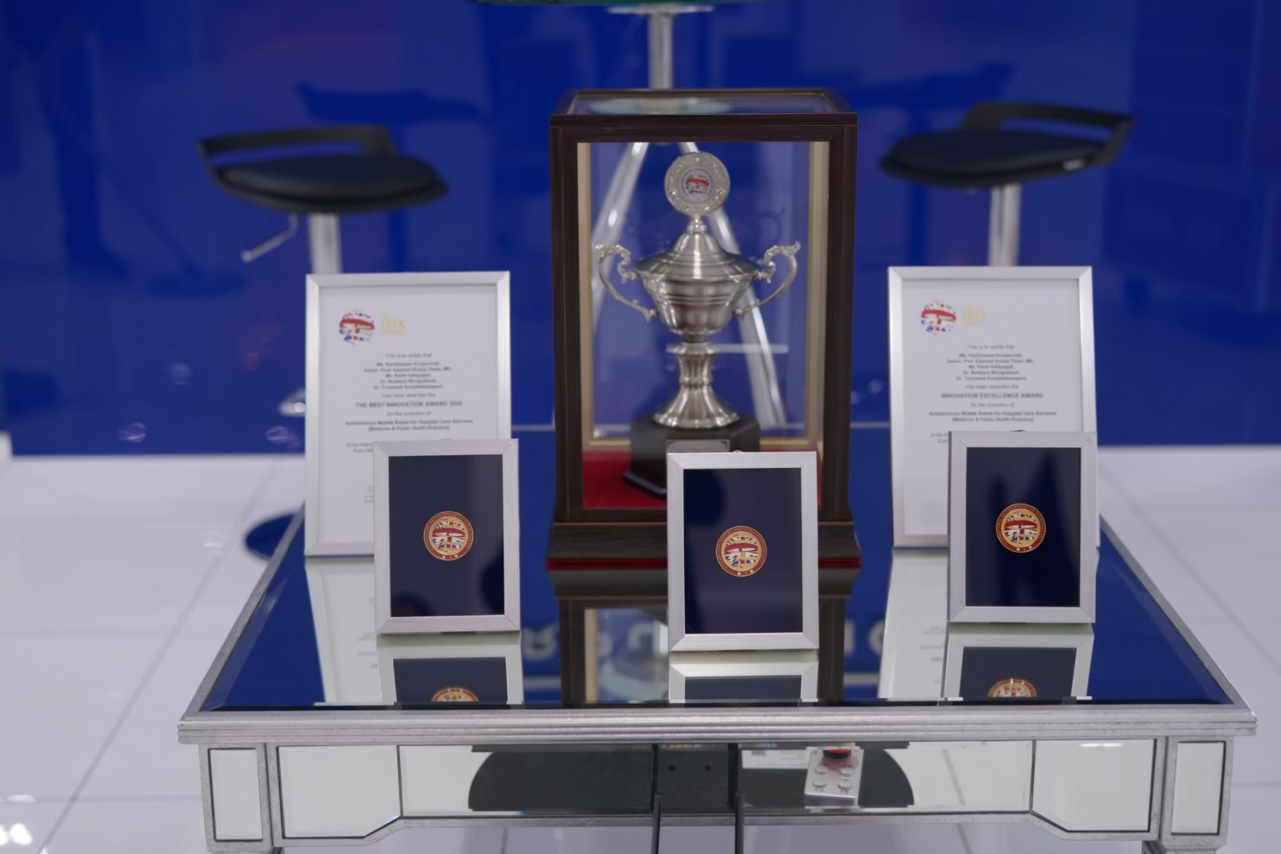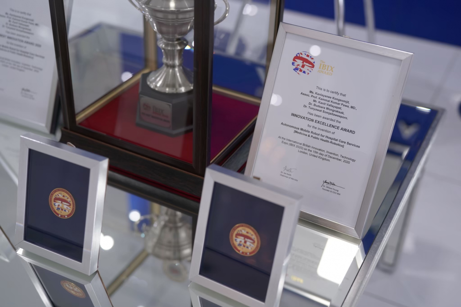 ที่ผ่านมาเราไม่เคยส่งผลงานไปประกวดใดๆ เลย และท่ามกลางสถานการณ์โควิด 19 เราได้เห็นหุ่นยนต์หลายๆ ค่ายพัฒนาเพื่อแก้ปัญหานี้กันอยู่แล้ว ที่ปรึกษาท่านหนึ่งของบริษัทเราจบจากอังกฤษ และมองว่าหุ่นยนต์ตัวนี้ไม่ธรรมดา ความไม่ธรรมดาคือ เพราะเป็นหุ่นยนต์ภาคอุตสาหกรรม Industrial Grade ไม่ใช่สิ่งประดิษฐ์ แต่เป็นผู้ผลิต หากได้รับการพัฒนาที่ดี มันคือความยั่งยืน Sustainability ที่สามารถนำไปต่อยอด ผลิตได้จริง และตอบโจทย์เป็นวงกว้างได้จริง จริงๆ ปีนี้ 2021 ถ้าไม่ติดโควิด 19 เราจะต้องไปรับรางวัลที่ Imperial Collage แต่ก็ไม่ได้ไป ทางผู้จัดจึงส่งรางวัลมาให้