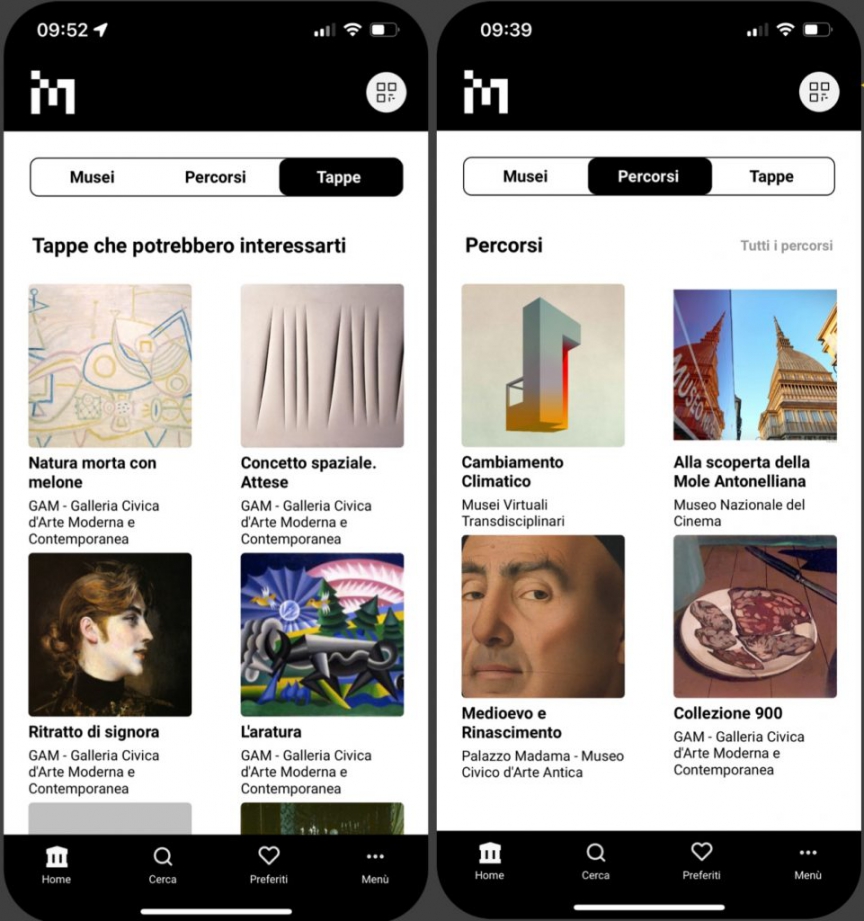 อีกกรณีศึกษาหนึ่งที่น่าสนใจเป็นการพัฒนาประสบการณ์ "พิพิธภัณฑ์เสมือนจริง" ให้กับผู้ชมผ่านแอปพลิเคชัน ชื่อ I-MUSE เมื่อผู้เข้าชมแสดงความสนใจสแกนคิวอาร์โค้ดของวัตถุหรือนิทรรศการ อัลกอลิธึมของปัญญาประดิษฐ์ จะเริ่มค้นหารายการวัตถุจัดแสดงหรือนิทรรศการที่คล้ายกันกับสิ่งที่ผู้ใช้แสดงความสนใจจากพิพิธภัณฑ์ในเครือข่ายของเมืองตูริน อิตาลี และประมวลผลเพื่อสร้างข้อเสนอแนะสิ่งที่ควรดูในคอลเล็กชันพิพิธภัณฑ์อื่นๆ โดยเป้าหมายของแอพพลิเคชันเพื่อดึงดูดผู้ชมใหม่ๆ และเพิ่มจำนวนผู้มาเยี่ยมชมพิพิธภัณฑ์