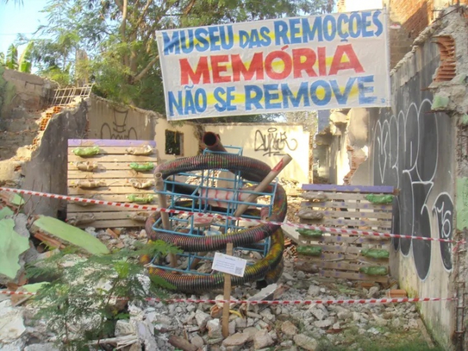 พิพิธภัณฑ์การไล่รื้อในชุมชนวิล่า ออโตโดรมู เมืองริโอ เดอ จาเนโร เป็นสัญลักษณ์สำคัญของการต่อต้านการบังคับออกจากชุมชน เพื่อเปิดทางให้กับโครงการก่อสร้างในการแข่งขันกีฬาโอลิมปิก ค.ศ. 2016 และโครงการพัฒนาเมืองที่ตามมา พิพิธภัณฑ์แห่งนี้เกิดขึ้นเพื่อรักษาเรื่องราวของครอบครัวที่ถูกขับไล่ และเป็นที่มั่นในการต่อสู้ทั้งให้กับบุคคลและชุมชนด้วยผลงานศิลปะ รูปปั้น และนิทรรศการต่าง ๆ การนำเสนอสิ่งจัดแสดงเหล่านี้เชื่อมโยงกับการเคลื่อนไหวทางสังคม และการต่อสู้เพื่อศักดิ์ศรีของชุมชน