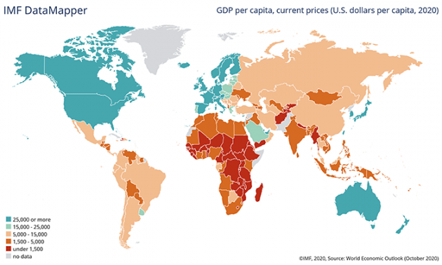 ภาพที่ 1 แผนที่แสดง GDP ทั่วโลกเมื่อปี ค.ศ.2020