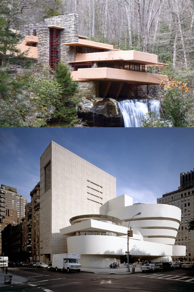 ภาพที่ 6 ผลงานออกแบบของไรท์ที่ได้รับการยอมรับว่าเป็นอมตะ Falling Water และ Guggenheim Museum