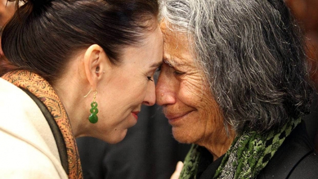 ภาพที่ 2 นายกรัฐมนตรีนิวซีแลนด์สวมต่างหูหยกโปว์นามุ ขณะทำพิธีฮองงิ (Hongi)