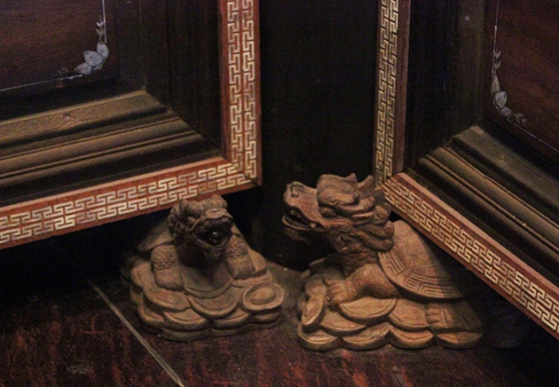 ภาพที่ 4 ขาตู้รูปเต่ามังกร (Dragon Turtle) สัตว์มงคลในความเชื่อของจีนนั่งอยู่บนกองเงินกองทอง