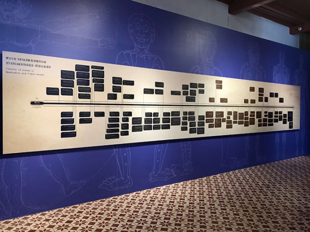 ไทม์ไลน์ของประวัติศาสตร์การเจ็บป่วยและการต่อสู้กับการเจ็บป่วยของมนุษยชาติตั้งอยู่บริเวณส่วนแรกของนิทรรศการ ดีจริงๆที่นิทรรศการนี้ไม่ได้คิดว่าไทม์ไลน์เป็นของเชยๆ เพราะมันเป็นเครื่องมือที่ดีสำหรับสรุปภาพรวมของประวัติศาสตร์