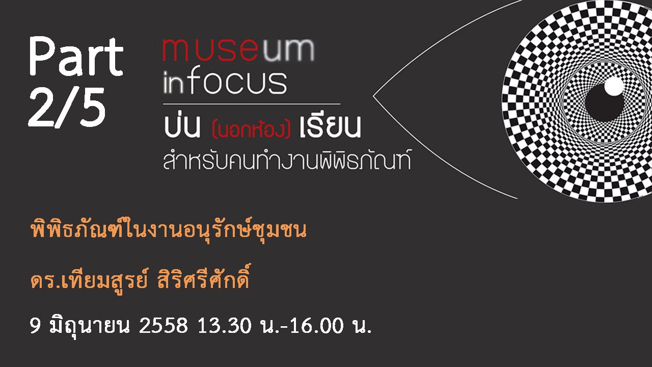 “พิพิธภัณฑ์” ใน “งานอนุรักษ์ชุมชน” คำสองคำนี้มีจุดเชื่อมกันตรงไหน การตีความของสองคำนี้สามารถสร้างความสัมพันธ์กันได้ ถ้าพิพิธภัณฑ์อยู่ในพื้นที่ประวัติศาสตร์ พิพิธภัณฑ์อาจเป็นส่วนหนึ่งของงานอนุรักษ์ชุมชน ต้นกำเนิดแรก ๆ ของพิพิธภัณฑ์ในงานอนุรักษ์ชุมชนมาจากประเทศอังกฤษและประเทศฝรั่งเศส แต่ประเทศไทยได้นำแบบมาจากประเทศอังกฤษมากกว่าซึ่งกระบวนการทำงานตอนแรกจะอยู่ที่ผังเมืองเพื่อสร้างให้เป็นมรดกทางวัฒนธรรมและบูรณาการเรื่องต่าง ๆ ไว้ด้วยกัน...